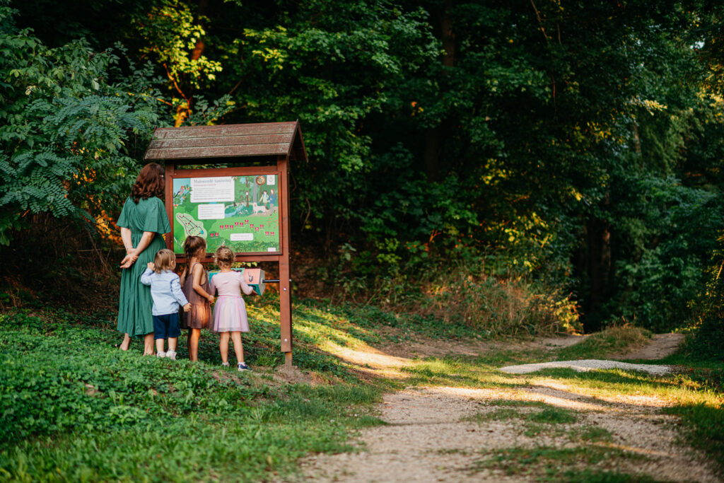 Guests arriving here are welcomed by beautiful surroundings, a homely atmosphere, the magical world of the forest, and fresh air from the very first moment. The 9 km-long Malomerdő educational trail starts from the courtyard of the lodge and can be easily explored on foot, with an off-road stroller, or even on horseback. Highlights of this green area include a charming little waterfall—once home to the mill wheel—and a wildlife observation point showcasing the fauna of the Vértes region, where fallow deer and mouflons often greet visitors.